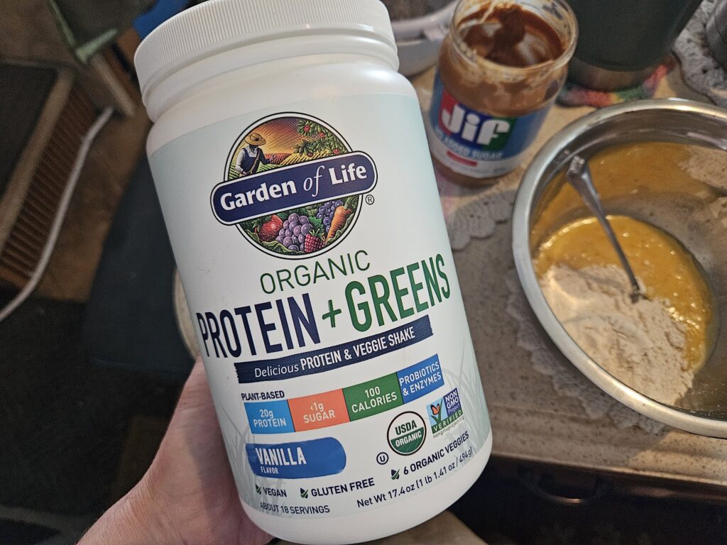 My daughter showed me Granny Guns on Instagram and I wanted protein cookies. Her recipe is a bit too intense for me. I just want regular cookies but with protein powder in them. I searched in some of the recipes on protein powder brand websites, then as usual went away and did something different.